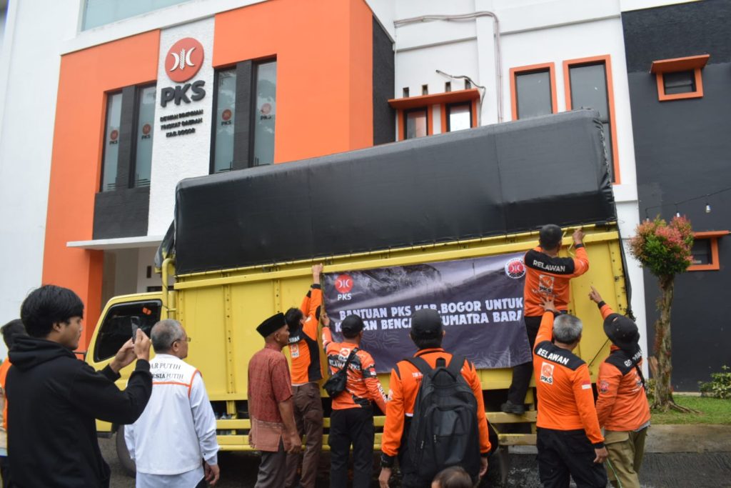 CIBINONG — DPD Partai Keadilan Sejahtera (PKS) Kabupaten Bogor melepas rombongan relawan kemanusiaan beserta bantuan untuk korban banjir bandang di Sumatera. Pelepasan dilakukan langsung oleh Ketua DPD PKS Kabupaten Bogor, Wasto, S.Hut, di halaman Kantor DPTD PKS Kabupaten Bogor, Cibinong, Rabu (31/12).